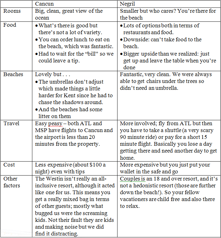 So the TLDR version is we prefer Negril when we have the time and money, and Cancun when either is a little tight.